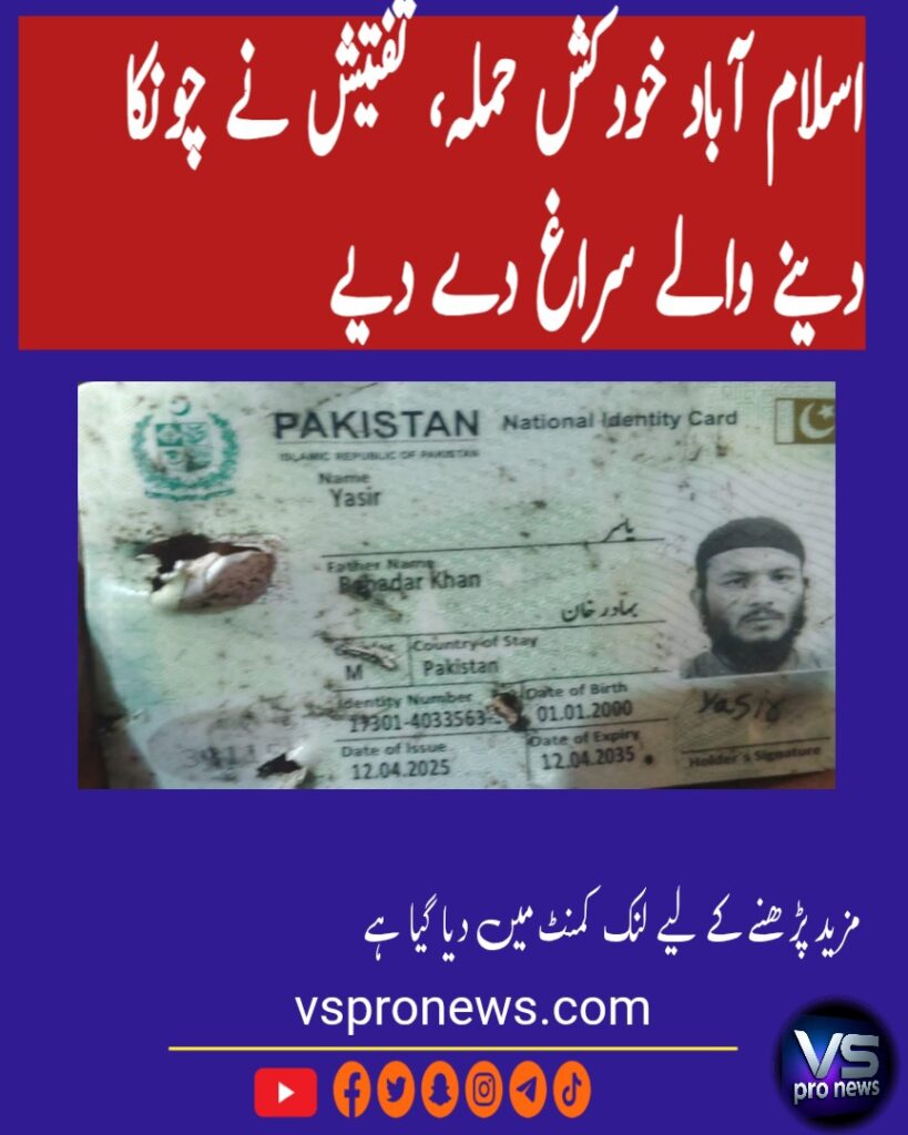اسلام آباد میں ہونے والے خودکش حملے سے متعلق اہم معلومات سامنے آئی ہیں۔ تفتیشی اداروں کے مطابق حملہ آور کا نام یاسر ہے جو پشاور کا رہائشی بتایا جاتا ہے۔
