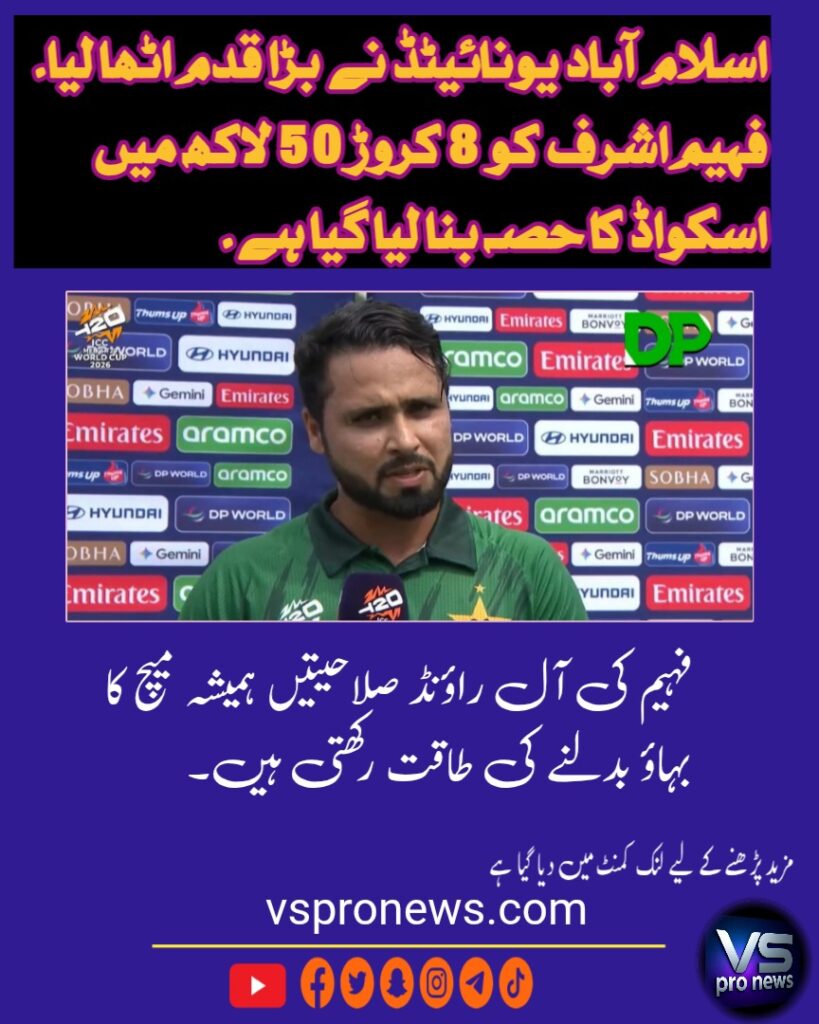 اسلام آباد یونائیٹڈ نے بڑا قدم اٹھا لیا۔فہیم اشرف کو 8 کروڑ 50 لاکھ میں اسکواڈ کا حصہ بنا لیا گیا ہے۔