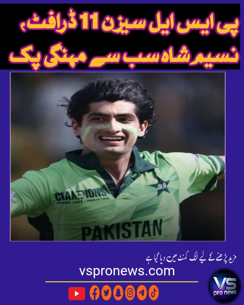 The Pakistan Super League (PSL) Season 11 player draft is underway, with both domestic and international players going under the hammer. A total of 880 players were registered, and each franchise had a budget equivalent to $1.6 million for player acquisitions.In the fast bowlers’ category, Naseem Shah was the top pick, with Rawalpindi selecting him for PKR 8.65 crore. Lahore Qalandars secured Haris Rauf for PKR 7.6 crore.Among all-rounders, Darryl Mitchell joined Rawalpindi for PKR 8.05 crore, while T20 captain Salman Ali Agha was bought by Karachi Kings for PKR 5.85 crore.In the batters’ category, David Warner attracted major attention, going to Karachi Kings for PKR 7.9 crore, and Riley Rossouw joined Quetta Gladiators for PKR 5.55 crore. Wicket-keeper Sahibzada Farhan was acquired by the Stallions for PKR 5.7 crore. Several notable players, including Shakib Al Hasan and Imad Wasim, went unsold this season.After retentions, the remaining budgets for franchises are: Islamabad United PKR 34.6 crore, Karachi Kings PKR 32.26 crore, Lahore Qalandars PKR 31.36 crore, Quetta Gladiators PKR 27.54 crore, and Peshawar Zalmi PKR 27.96 crore.PSL Chief Executive Salman Naseer stated that player registration this year was higher than ever. With the addition of two new teams, the competition in the league is expected to be even tougher.Season 11 is set to begin on March 26, 2026, with a total of eight teams competing for the trophy.