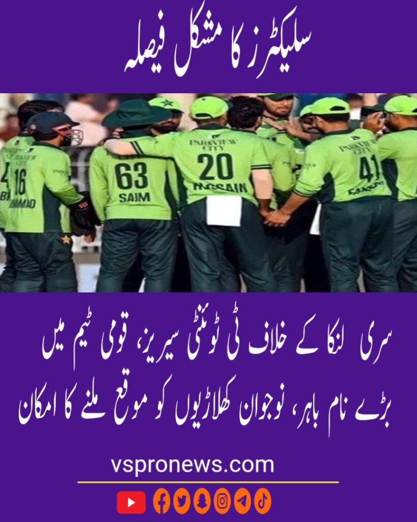 جنوری کے آغاز میں سری لنکا کے دورے کے لیے قومی ٹیم کا اعلان کسی بھی وقت متوقع ہے۔ پاکستان اور سری لنکا کے درمیان تین ٹی ٹوئنٹی میچز 7، 9 اور 11 جنوری کو دمبولا میں کھیلے جائیں گے، جس کے لیے سلیکشن کمیٹی نے کھلاڑیوں کے انتخاب پر مشاورت تیز کر دی ہے۔