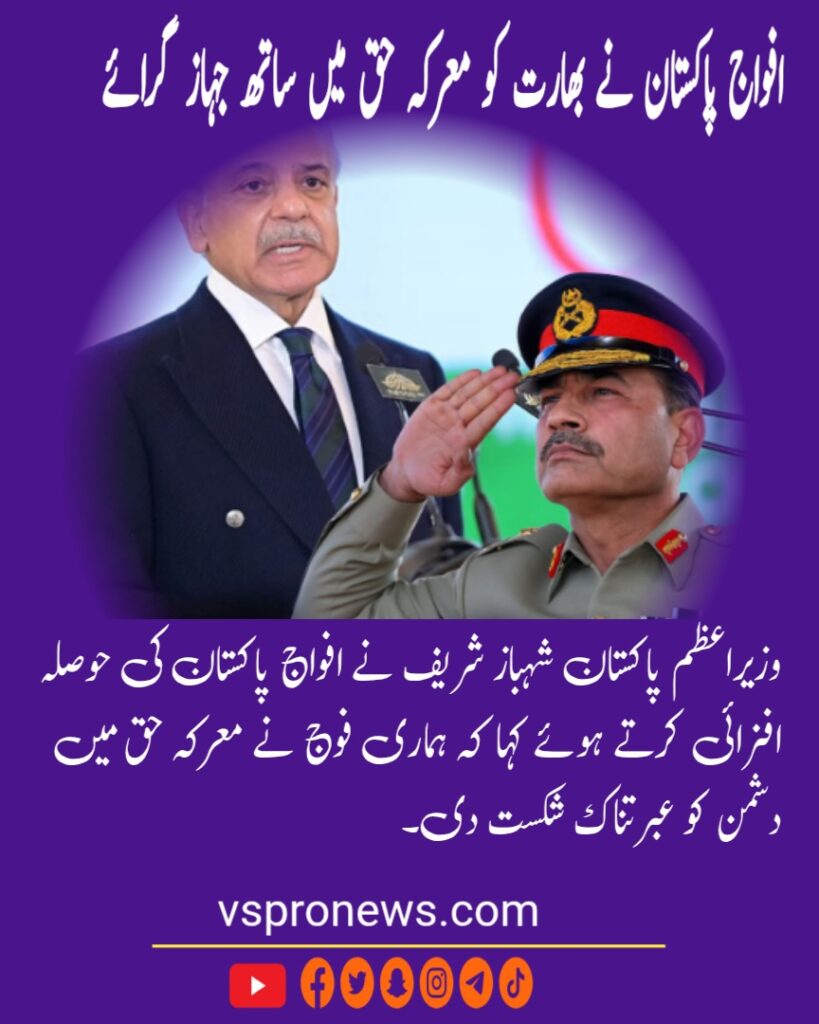 Prime Minister Shehbaz Sharif praised the Pakistan Armed Forces, saying they delivered a crushing defeat to the enemy in Operation Haq.