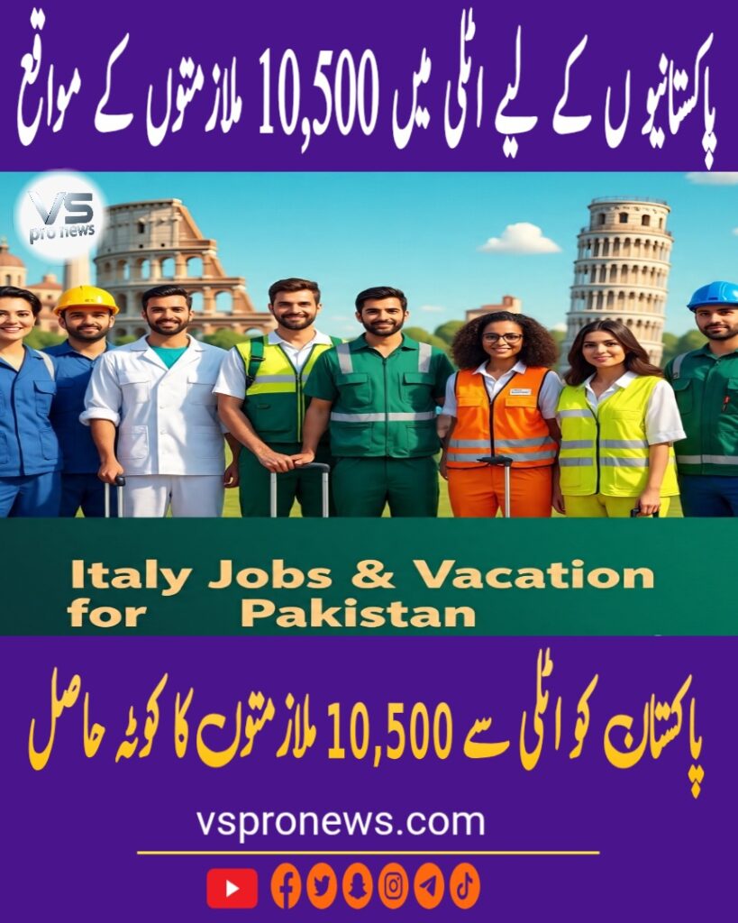 Pakistan has achieved a major milestone by securing 10,500 job opportunities in Italy over the next three years. Under this agreement, 3,500 Pakistani workers each year will have the chance to work in Italy across various sectors. This initiative strengthens Pakistan-Italy labor cooperation and provides legal employment abroad for Pakistani workers.
