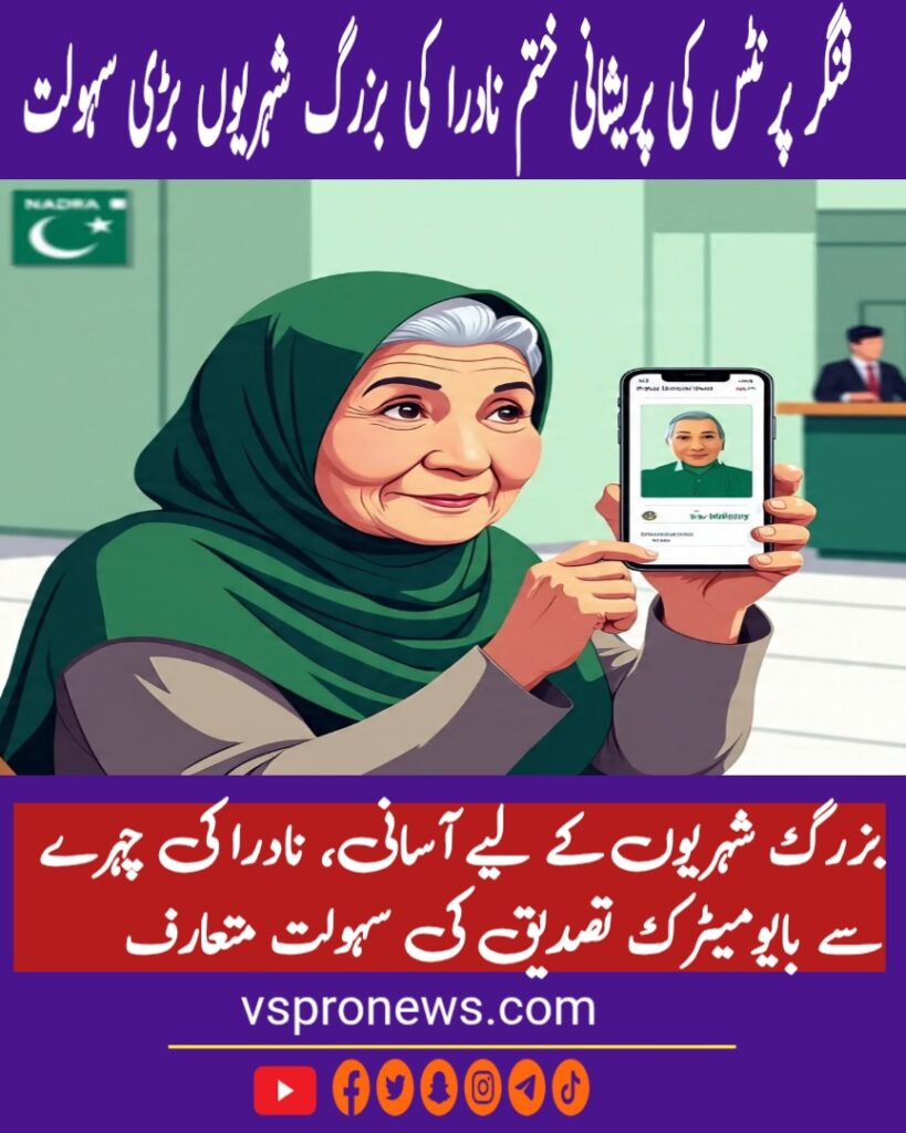 نادرا نے بزرگ شہریوں اور طبی مسائل کے شکار افراد کے لیے ایک اہم اور عملی سہولت متعارف کرا دی ہے۔ اب وہ شہری جنہیں فنگر پرنٹس کی تصدیق میں بار بار دشواری پیش آتی تھی، اس مسئلے سے نجات پا سکیں گے۔