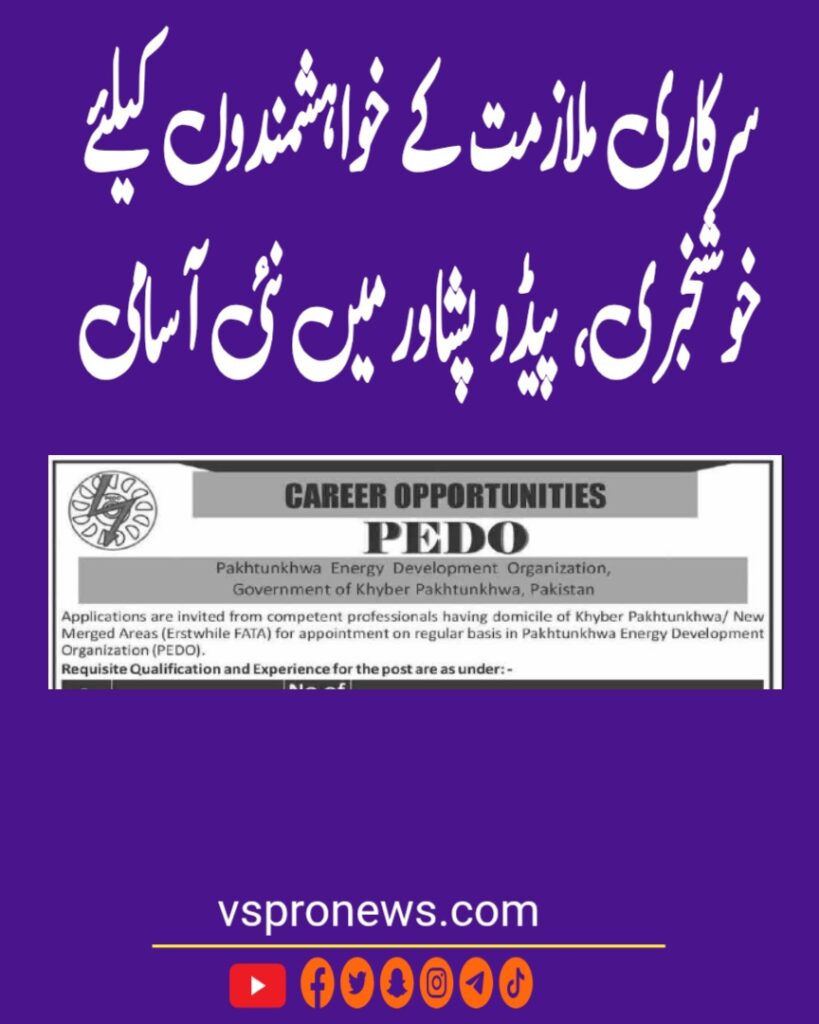 FinancePakhtunkhwa Energy Development Organization PEDO has announced a new government job in Peshawar. Applications are invited from eligible candidates for the post of Deputy Director Finance. The vacancy was advertised on December 31, 2025 in the daily Dawn newspaper.The position is based at PEDO Hayatabad, Peshawar, Khyber Pakhtunkhwa.