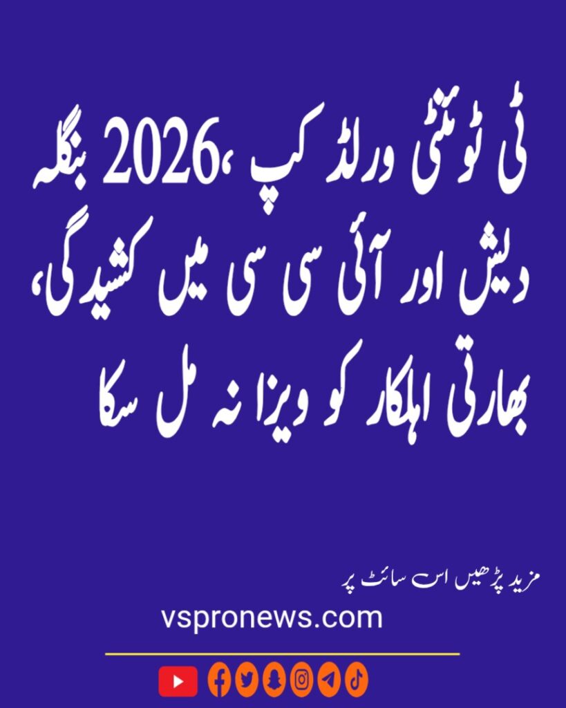 آئی سی سی ٹی ٹوئنٹی ورلڈ کپ 2026 میں بنگلہ دیش کی شرکت کے معاملے پر صورتحال مزید پیچیدہ ہو گئی ہے۔ ذرائع کے مطابق آئی سی سی کے دو عہدیداروں کو 17 جنوری کو بنگلہ دیش کرکٹ بورڈ سے مذاکرات کے لیے ڈھاکہ جانا تھا، تاہم بنگلہ دیش نے آئی سی سی کے ایک بھارتی اہلکار کو ویزا جاری کرنے سے انکار کر دیا۔