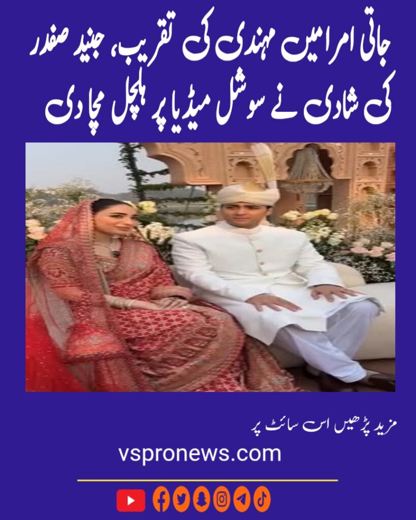 جنید صفدر اور شانزے علی روحیل کی شادی کی تقریبات آئندہ دنوں میں بھی جاری رہیں گی، اور عوامی دلچسپی کا مرکز بنی رہیں گی۔ اس شادی سے متعلق ہر نئی تفصیل سوشل میڈیا پر تیزی سے شیئر کی جا رہی ہے، جس سے اس جوڑے کی زندگی کے اس خاص دن کو خاص اہمیت مل رہی ہے۔