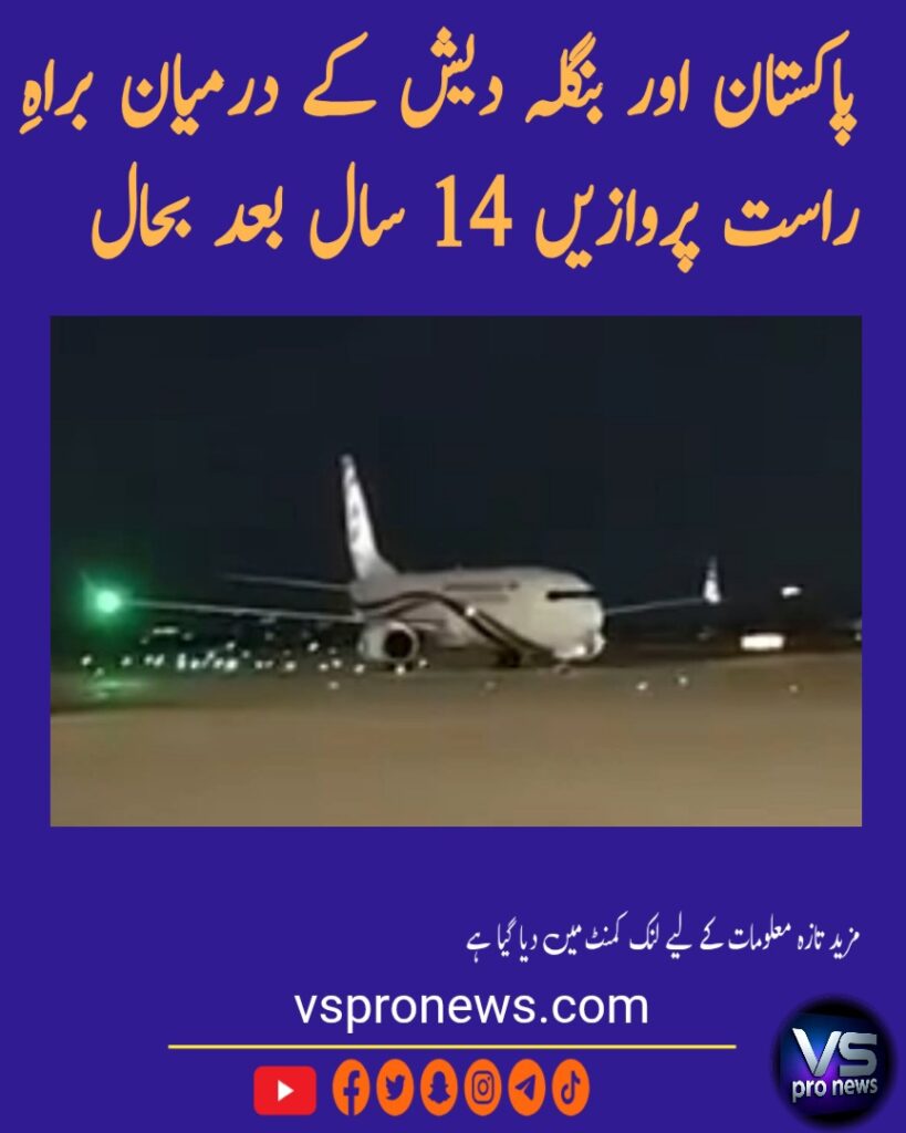 پاکستان اور بنگلہ دیش کے درمیان براہِ راست فضائی رابطہ 14 سال بعد دوبارہ بحال ہو گیا ہے۔